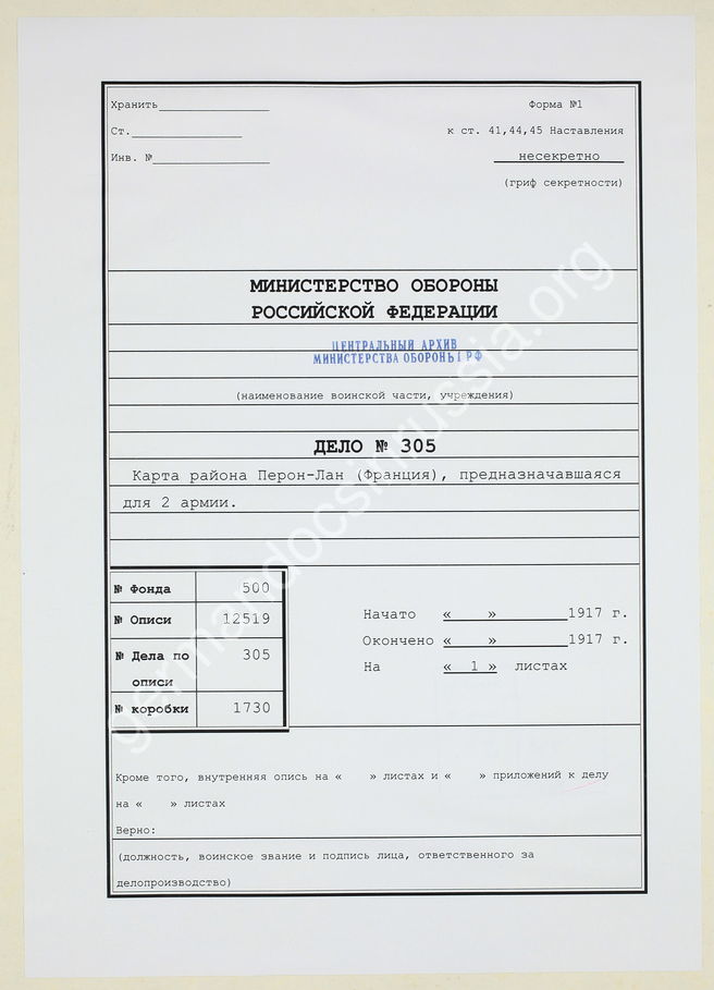 Дело 305. Карта района Перрон-Лан (Франция), для 2 Армии.М 1:80 000
